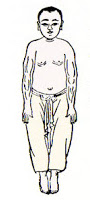 Placez vous debout, les pieds écartés de la largeur du bassin.